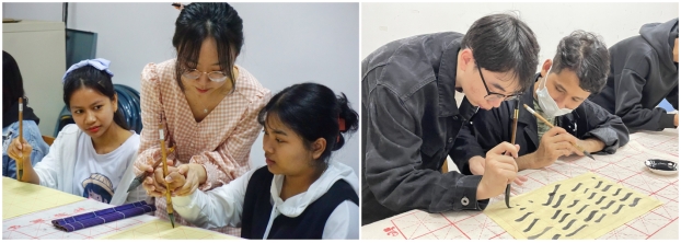 执笔书经典,古韵逸书香。书法是中国汉字历史和深度文化意义的体现,更是具有传统中国特色的艺术形式,具有跨越国界的独特意义。为了让国际学生更加深入地体验中国传统文化,我院组织学校书法俱乐部成员,开展了为期2个月的书法兴趣班活动。活动期间,中国学生与国际学生用书法搭建起了文化沟通的桥梁,共同探讨中国书法书写问题。在一撇一捺,点点墨水之间,传播着深厚的中国传统文化。6月4日恰逢端午假期,国际学生在书法俱乐部成员的带领下共同书写了端午节相关诗句,在诗词中了解端午的历史故事,为首期书法兴趣班画上了一个圆满的句号。