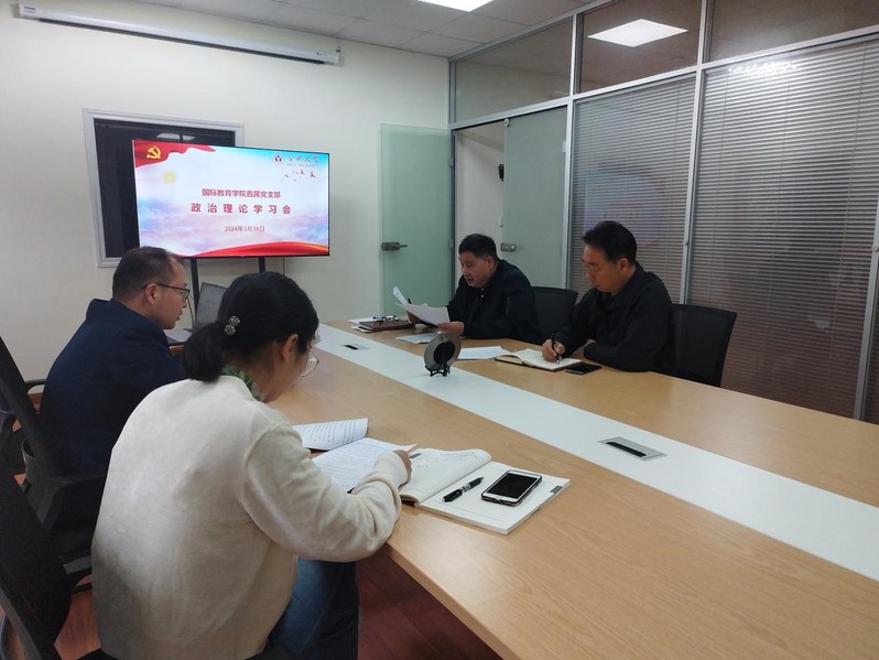 328日上午,国际教育学院直属党支部召开政治理论学习会议,集中传达学习了习近平总书记在中央政治局第十二次集体学习时的重要讲话精神,传达学习了习近平总书记在湖南考察和主持召开新时代推动中部地区崛起座谈会上重要讲话精神,传达学习了《教育部办公厅关于进一步压实高校师德师风建设主体责任的通知》等。学院全体在职人员参会,会议由支部书记方宗保主持。