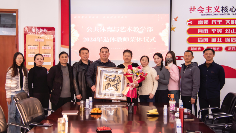 许刚在总结发言再次肯定了汪老师多年来热心执教、恪尽职守、无私奉献的职业精神,感谢学部教书育人的突出贡献,希望汪老师能继续关心和支持学校和部门的发展,为学校建设特色鲜明的高水平大学贡献智慧。活动最后,部门为汪老师颁发荣休纪念品,并合影留恋。这一温馨而感人的场面激励着全体教职工不忘初心、砥砺前行。体艺部举办此次荣休仪式,旨在弘扬尊师重教传统,构建新时代尊师文化,传递师德力量,增强教师教书育人的责任感和荣誉感,为学部发展注入强大的精神动力。(撰稿:欧阳井凤  初审:毛献亮  复审:霍永海  终审:许刚)