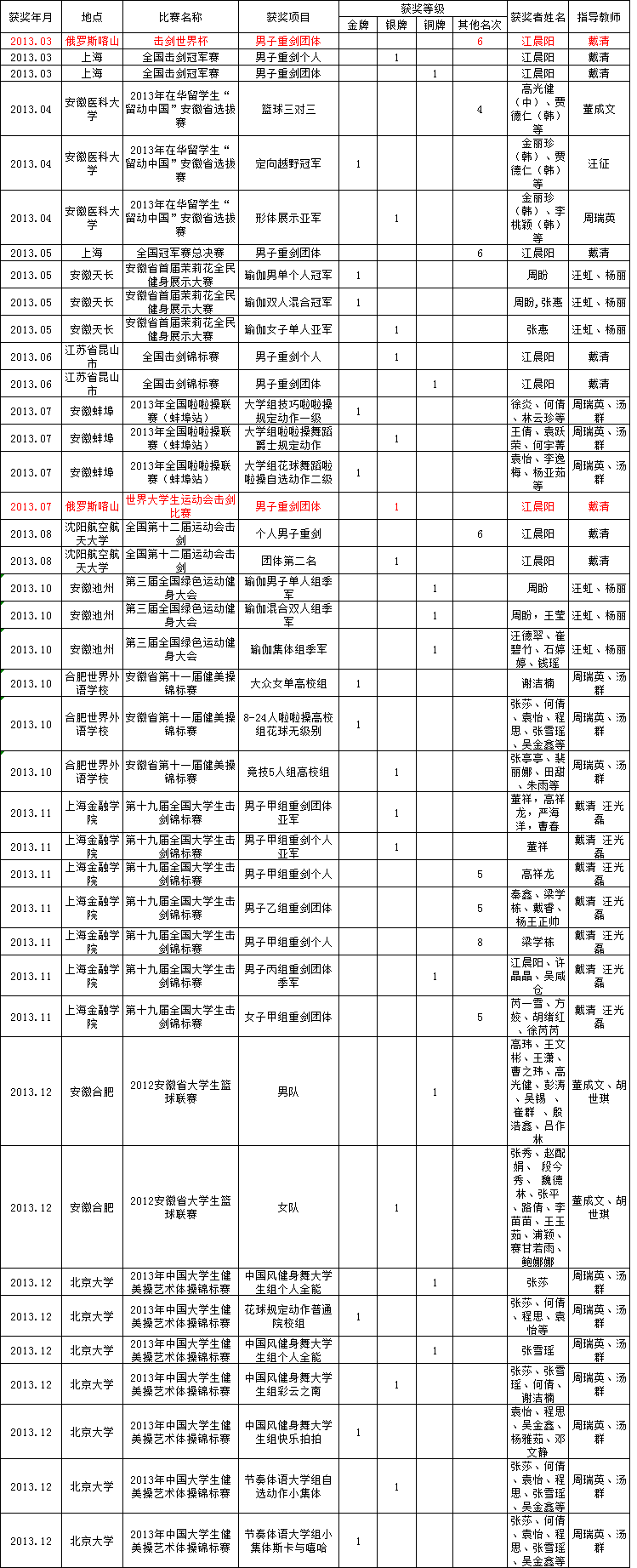 2013年合肥学院体育俱乐部改革指导学生获奖一览表
