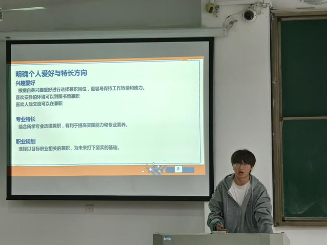 首先,由22级潘炳志学长发言。为了帮助新生有更高的生活质量,他分享在校大学生参加校内外实践锻炼的经验。他指出大学生活是一段充满挑战与机遇的旅程,它不仅仅是学习专业知识的地方,更是我们成长、锻炼和塑造自我的重要阶段。