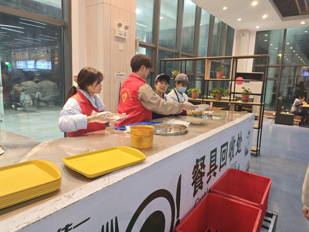 为了打造一个整洁和舒适的用餐环境,我院学生会志愿团于11月21日至11月25日积极组织发起了一场由志愿者参与的食堂桌面清理行动。此次活动不仅有效地提升了大家的环保意识,还进一步促进了员工与志愿者之间的交流与合作,增进了彼此之间的友谊和默契。
