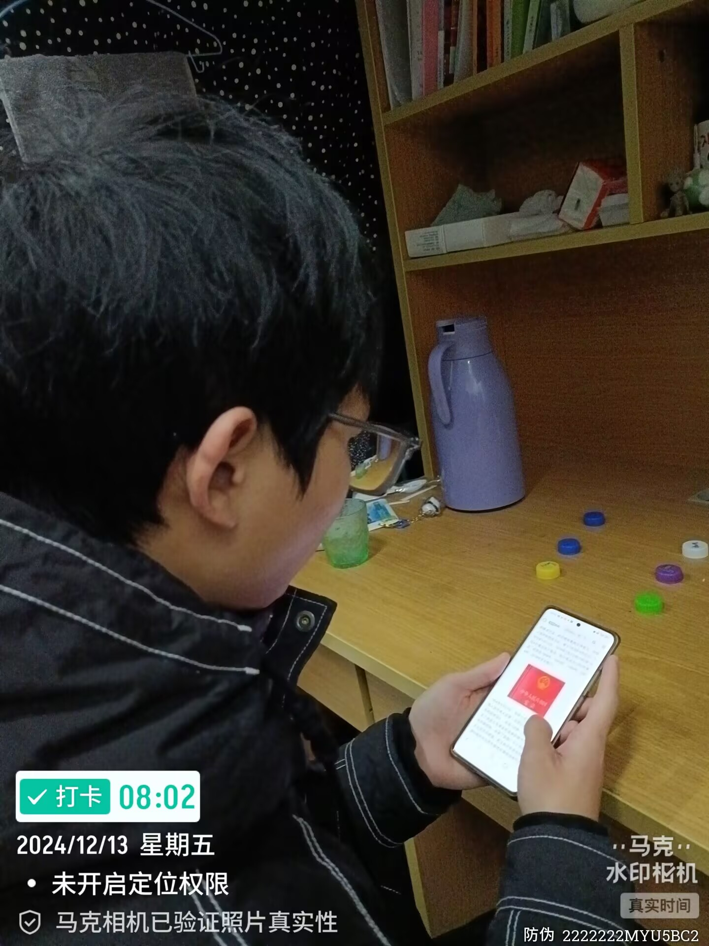 本次宪法晨读活动采用了线上打卡的形式,要求同学们在早上九点前认真进行宪法学习,并拍摄带有特定水印的人像照片,上传至材化学院志愿团服务队设立的专属群组中。每个学子在晨读前都精心整理好自己的仪容仪表,拿起手机或相机,找到合适的角度和光线,拍摄下自己精神饱满、意气风发的模样。照片上,那清晰的人像和醒目的水印,仿佛在向世界宣告着他们对宪法的尊重和对法治的信仰。