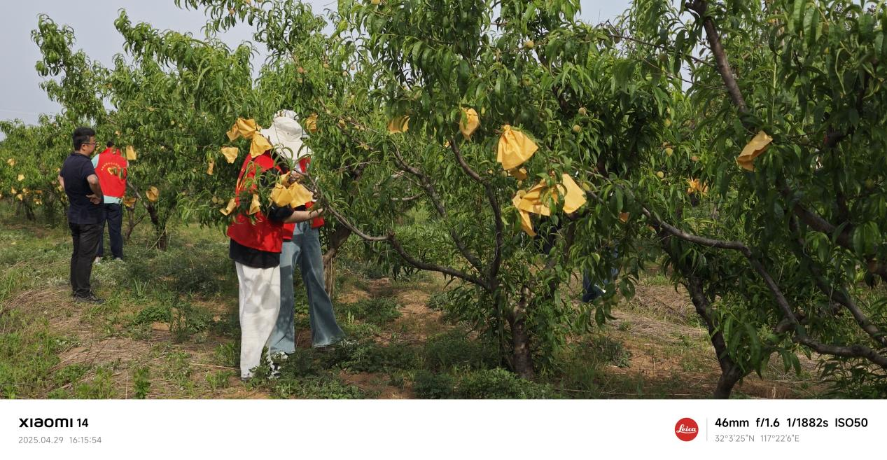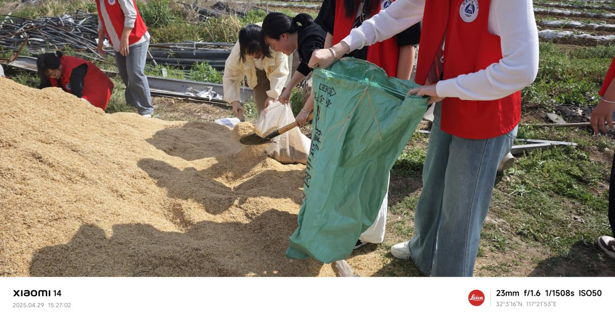 下午两点半,实践活动正式开始。志愿者们分成两个小组,在技术人员指导下先后完成了两项农事作业。第一项是装运稻壳,同学们分工协作,有的负责装袋,有的负责运输,在汗水中体会团队合作的重要性。第二项是桃子套袋,这项技术要求细致耐心,同学们认真学习技术要领,小心翼翼地完成每一颗桃子的保护工作。