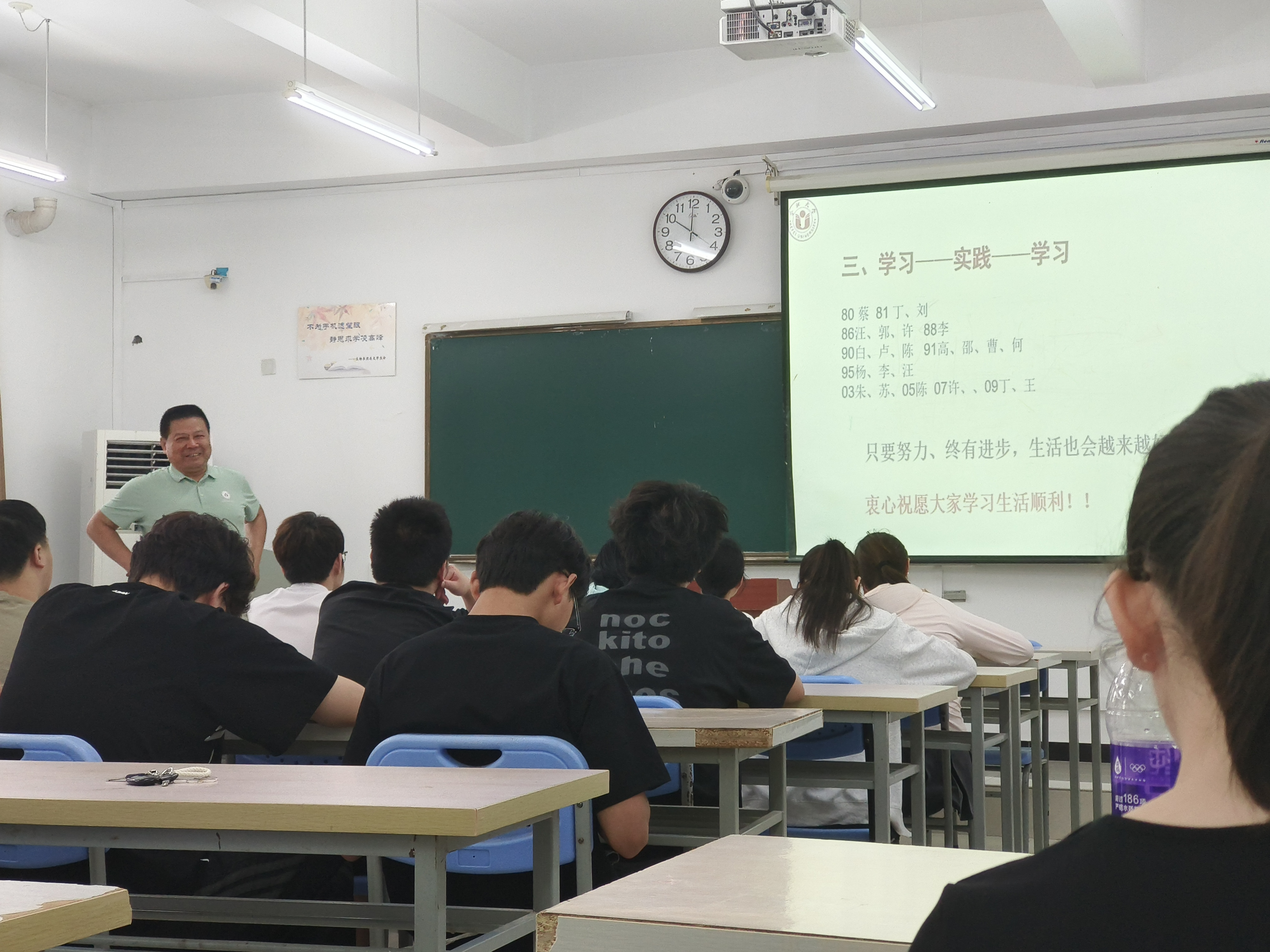 最后讲到踏实做事和学习实践环节时,朱老师结合化工专业的特点,以化工原理课程中的一些小知识引起同学们思考,详细阐述了实践对于理论学习的重要性。他鼓励学生积极参与科研项目和社会实践活动,将所学知识运用到实际中,提高自己的动手能力和解决问题的能力。朱老师还分享了许多自己在科研和教学过程中的成功经验和失败教训,让学生们受益匪浅。