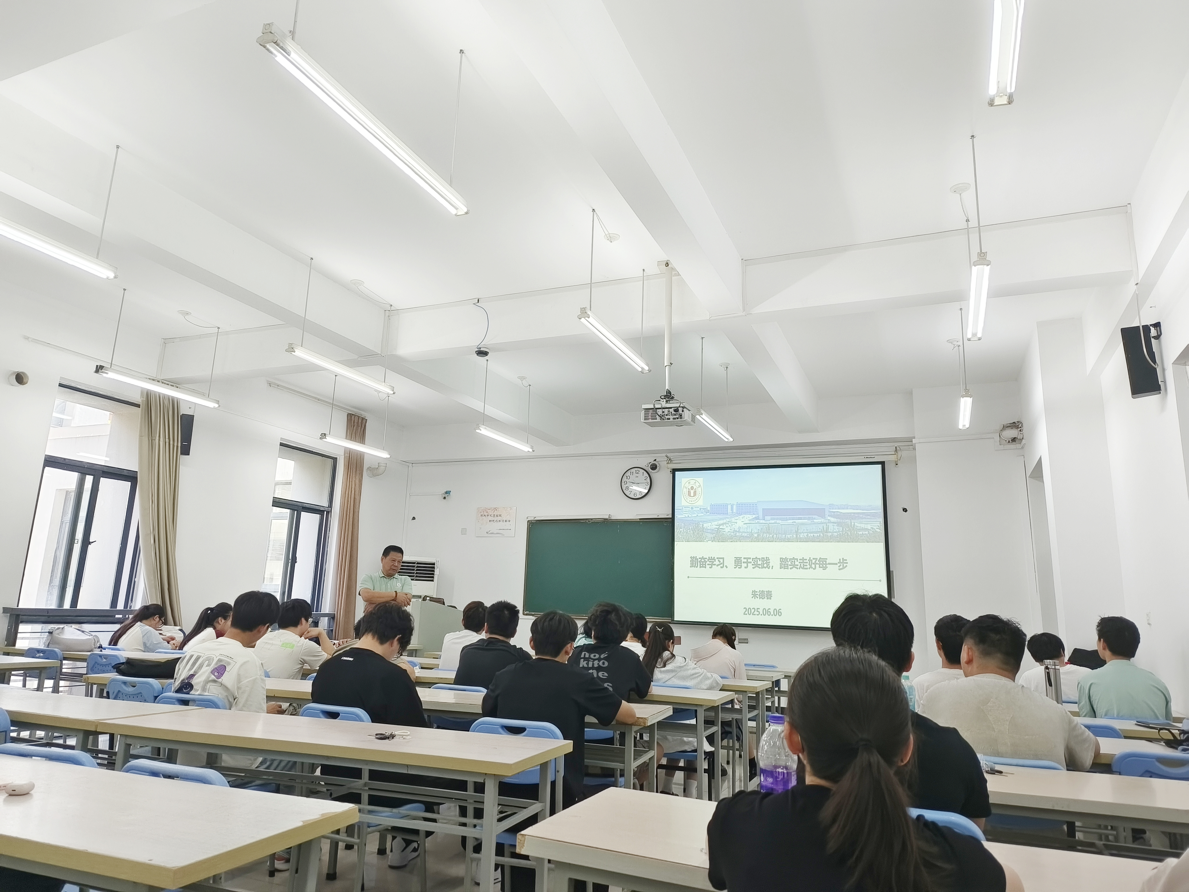 根据《教育部关工委关于开展2025年“读懂中国”活动的通知》和《安徽省教育厅关工委转发教育部关工委关于开展2025年“读懂中国”活动的通知》要求,充分发挥“五老”亲历者、见证者、实践者的优势,向广大青年学生讲好新时代以中国式现代化全面推进强国建设、民族复兴伟业的故事,讲好新时代教育事业取得的历史性成就、发生的历史性变革,教育引导青少年学生坚定马克思主义信仰、中国特色社会主义信念、中华民族伟大复兴信心,立报国强国大志向、做挺膺担当奋斗者。6月6日上午9点,能源材料与化工学院特邀退休教师朱德春教授,在生化楼201举办了一场以“勤奋学习,勇于实践,踏实走好每一步”为主题的讲座。此次讲座由学院党委副书记魏安乐主持,吸引了众多学生到场聆听。