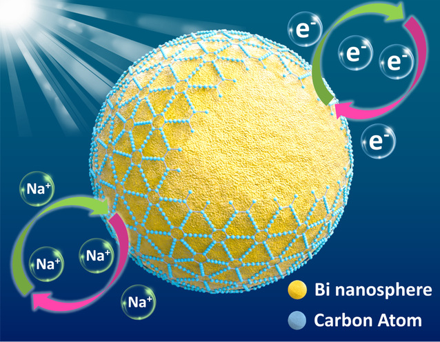 铋因其超高的理论体积容量,成为钠离子电池(SIBs)极具前景的极材料。然而,其实际应用受到循环过程中显著体积膨胀的阻碍,导致容量快速衰减。本研究报道了Bi@GDY的合成——一种通过原位催化生长法制备的纳米复合材料,由包裹在石墨炔(GDY)核壳结构中的铋纳米球组成。这种独特结构有效缓解了体积膨胀,同时增强了钠存储性能,展现出优异的电化学特性,包括高容量、卓越的循环稳定性和宽温域稳定性能。Bi@GDY阳极在3000次循环后仍保持361.6 mAh g-1容量,容量保持率达96.9%。原位和非原位表征揭示了增强的反应动力学,并证实了特征性合金化/脱合金机制。此外,Bi@GDY//NVP全电池在700次循环后实现183.2 mAh g-1的容量,保持率为86.9%,突显了其在实际钠离子电池应用中的潜力。这些发现表明Bi@GDY是下一代钠离子电池极具应用前景的极材料。