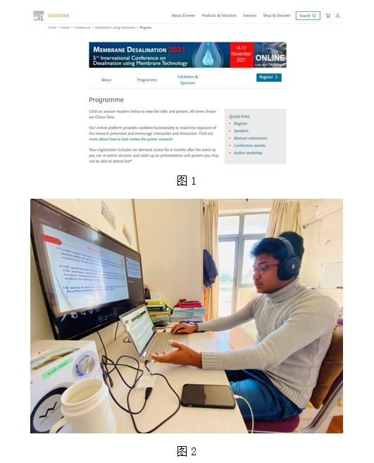 能源材料与化工学院的研究生Narendra Basel代表合肥学院参加本次会议,并通过大会组委会的选拔,以学生身份获得Membrane Desalination 2021 (MEMDES2021)论坛的15分钟口头发言时间。该生以Ultrafast sieving of dye with in-situ generated covalent organic frameworks layer on PAN mixed matrix membrane (MMMs)”为题,向参会代表重点介绍了纳滤脱盐的试验结果和研究进展,并现场回答澳大利亚和泰国学者关心的学术问题。受到新冠肺炎疫情的影响,本次国际会议(图1和图2)全部由线下转为线上举行,国际期刊“膜科学”共同主编Wang Rong女士和期刊“脱盐”共同主编He Tao先生参与并线上主持本次会议。