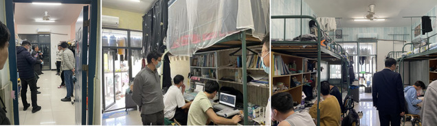 检查期间,童玉松叮嘱同学们要严格遵守学校疫情防控管理的相关规定,切实做好自我管理、自我约束、自我防护,养成良好卫生习惯,提醒同学们每日按时完成今日校园打卡,及时关注班级群消息,积极配合学院完成各项防疫工作。胡坤宏则与同学们亲切交流,详细询问了同学们线上学习状况及存在的困难,强调要尽快转变学习方法以适应网络课堂,努力提高线上学习效率,如遇到自己无法解决的困难,要及时与任课老师沟通协助解决。魏安乐提醒同学们要养成良好的生活习惯,加强体育锻炼,增强体质,针对校园封闭管理等问题,认真配合学校管理,积极调整心态。