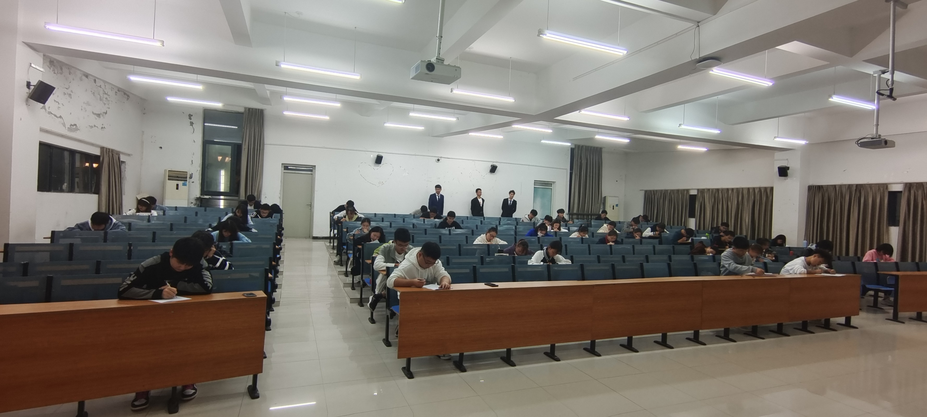 考试开始之际, 来自不同学院的参赛者按时到场并签到入座,工作人员统一分发试卷。考试期间,场内布置干净整洁,物品排放错落有有序,工作人员认真监考,同学们安静、沉着答题。大家奋笔疾书的场景就如同欧阳修诗中所写的“无哗战士衔枚勇,下笔春蝉食叶声”场景一般无二。参赛选手们遵守考试准则,真正做到了诚信考试,文明考风。