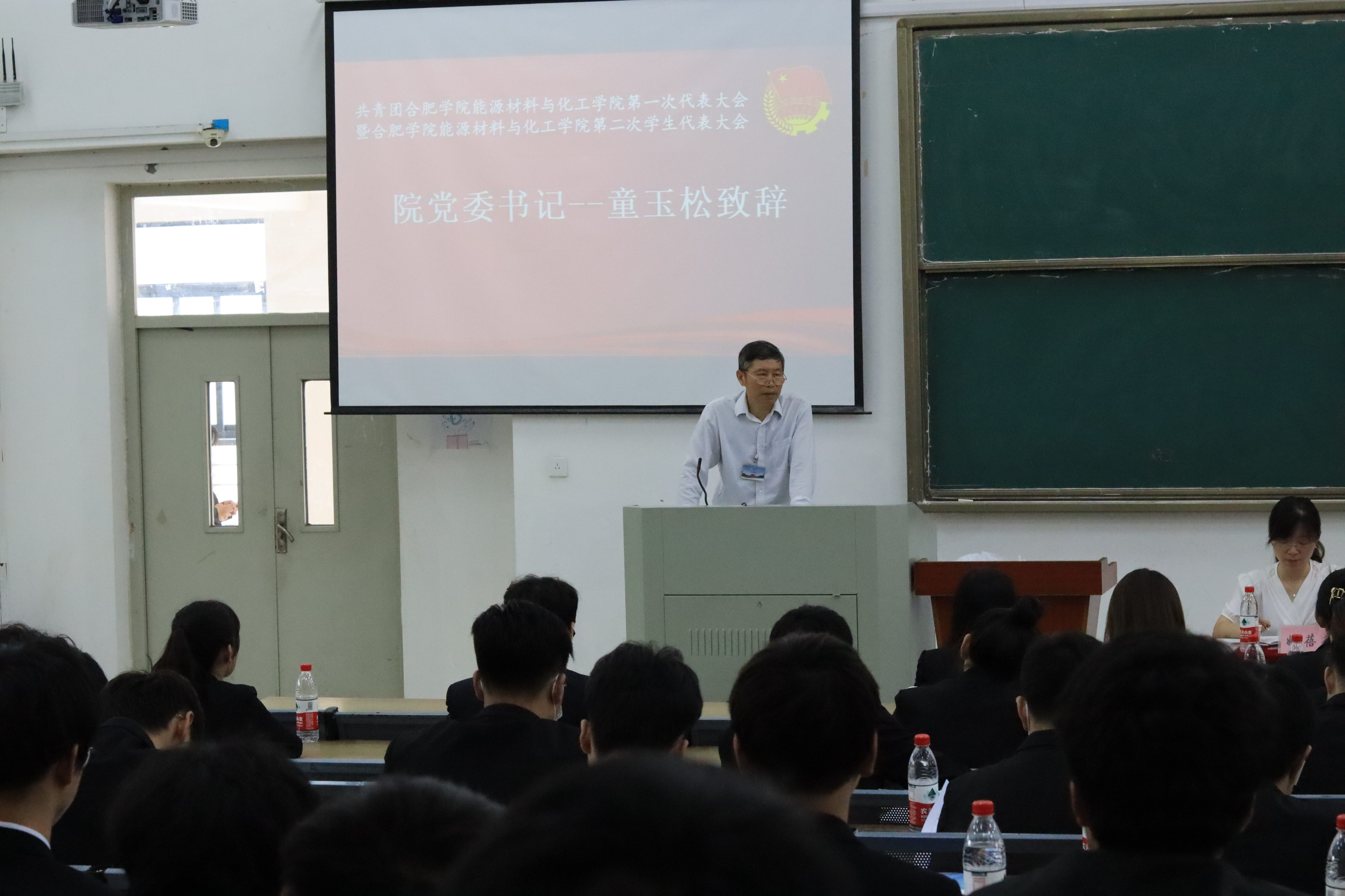 6月4日上午9:00,随着令人振奋的旋律缓缓响起,全体师生共唱国歌,共青团合肥学院能源材料与化工学院第一次代表大会暨能源材料与化工学院第二次学生代表大会于生化楼2楼阶梯教室正式召开。校团委书记王玉、校特邀代表田方方、院党委书记童玉松、院党委副书记魏安乐、院两办主任姚蓓蓓、院团委指导老师唐静、各学院主席团代表及我院全体学生代表出席会议,唐静老师主持大会开幕式。首先,田方方代表校学生会对我院团委学生会过去一年所取得的成绩给予了充分赞许,并向我院提出了将学生会工作做得更有意义的期望。接着,王玉肯定了我院团委取得可喜的成绩,对我院学子从坚定理想信念、勤奋刻苦学习、保持斗争精神、甘于吃苦奉献、保持政治定力等五个方面表达了殷切期望,指出了我院团学工作的努力方向。随后,童玉松先是对大会的召开表示祝贺,然后提到身为一名团员,一是要珍惜韶华,树立远大理想,筑牢精神底色;二是要立德修身,提升个人修养,树立大格局,学会团结协作与担当责任;三是要认真学习,矢志艰苦奋斗,在学习阶段把基石打深、打牢,求真学问,练真本领,成就精彩人生。