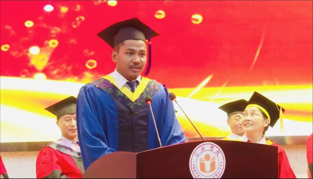 Narendra Basel是能源材料与化工学院“材料科学与工程”专业的硕士留学生,2019年经过合肥学院国际交流合作处的选拔和组织,从尼泊尔来到合肥学院求学,主要从事新型膜材料与膜过程相关的课题研究。他热爱科研,特别是化学实验;即使是在疫情最严重的隔离期,他仍然坚持每天阅读大量的英文文献并着手设计实验,撰写详细的试验步骤与导师和同学们交流讨论。经过三年的学习,他于2022年6月顺利毕业,并代表全校留学生在毕业典礼上发言致辞。