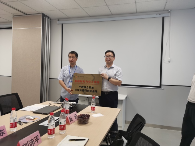 接着一行人来到山东富海石化工程有限公司安徽分公司。公司于2016年成立,主要从事基础化学和精细化学品制造行业施工图设计等业务,属于专业的化工设计公司。目前我院有3名毕业生在该公司工作,表现良好。座谈交流中,企业相关部门负责人从公司发展历程、主营业务、人才培养和企业愿景等方面展开了介绍,并表现来强烈的人才需求愿望。随后,胡坤宏院长介绍了学院相关情况,并表示这次既是来看望学生,也是听取企业对学校人才培养工作的意见与建议,希望下一步能够在人才培养过程中进一步加深、加强合作,最后双方进行了毕业生实习就业基地签约挂牌仪式。