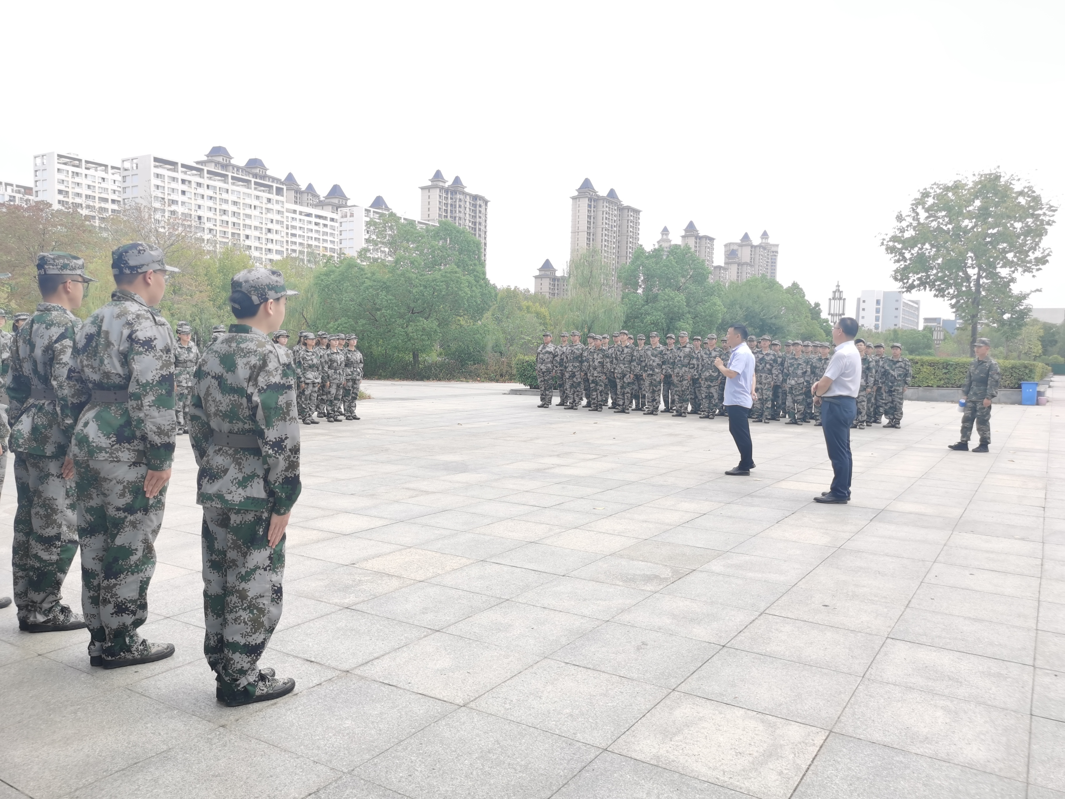 两位领导详细询问教官军训进展情况,并代表学院对参训教官的严谨负责、辛勤工作表示衷心感谢。刘沛平嘱托新生服从教官指令和军训安排,遵守校园疫情防控要求,在训练中培养和发扬顽强拼搏、奋勇争先的精神,以积极进取的态度锻炼体魄,为接下来的大学生活打下坚实的基础。魏安乐介绍了学院的发展历程、专业设置、科研和教学成果,鼓励参训新生树立远大志向,勤勉刻苦,锐意进取,争取收获美好的大学生活。