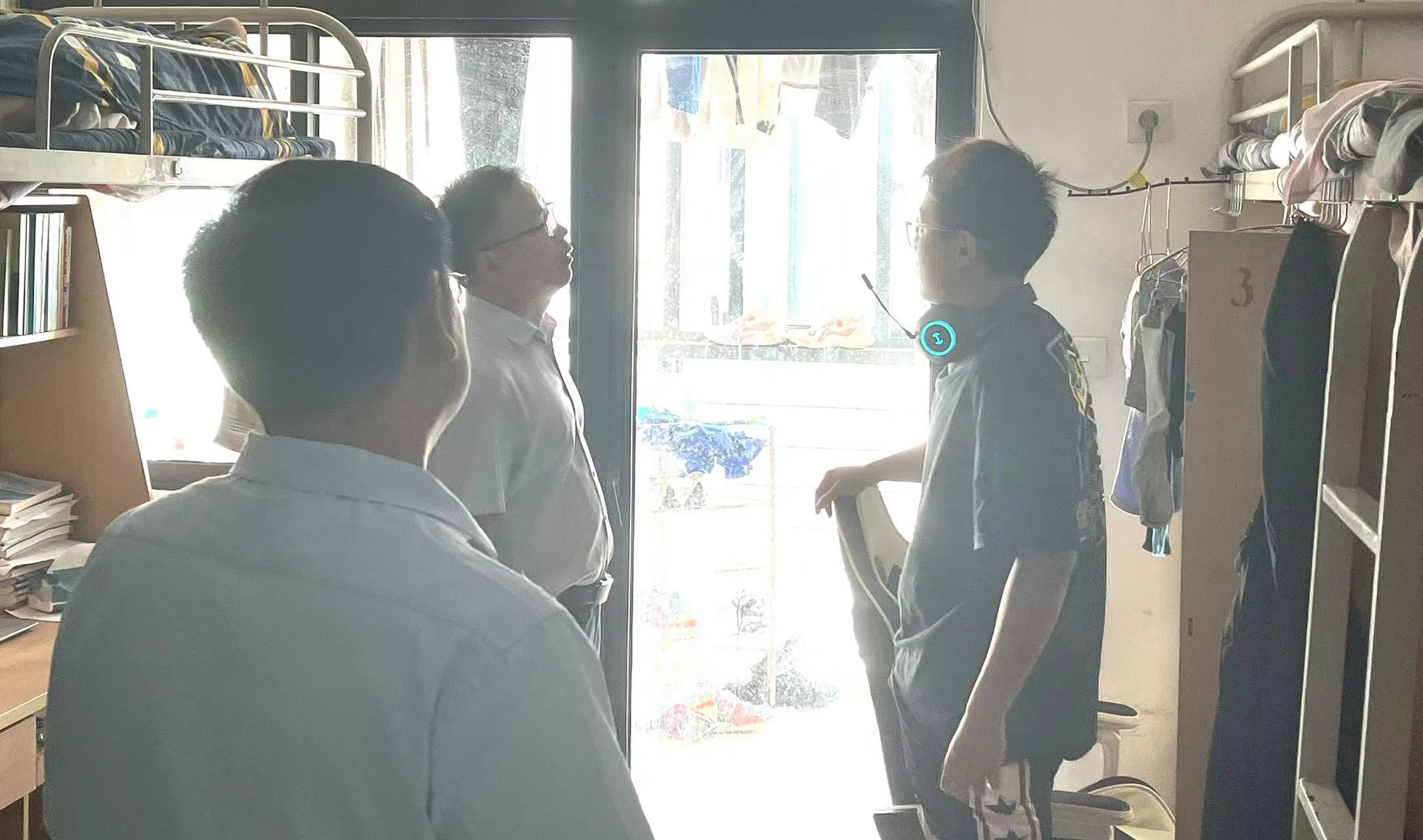 学院领导们分组对学生宿舍进行检查。对宿舍安全隐患进行全面排查,重点检查用电、用水的安全以及卫生情况。经检查发现大部分宿舍的总体情况良好,地面无杂物堆积,房间干净整洁,物品摆放有序,是,有个别宿舍存在乱扯插线板、宿舍电源箱电线裸露等安全问题。对此学院领导们提出整改措施,要求相关宿舍立即整改,共同爱护宿舍环境。