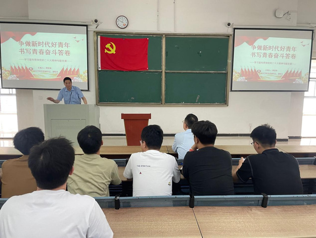 随后两位院领导为全体新发展党员做了专题党课。院党委副书记、副院长邓崇海谈到要贯彻党的二十大精神坚定理想信念,做到心中有信仰,脚下有力量,肩负起实现中华民族伟大复兴的时代重任,以青春之我,创造青春之国家。副院长鲁红典提到要以党的二十大精神为指引,全面贯彻党的教育方针,加强党的全面领导,落实立德树人的根本任务,为中国式现代化建设培养造就德智体美劳全面发展的应用型、创新型、复合型高素质人才。