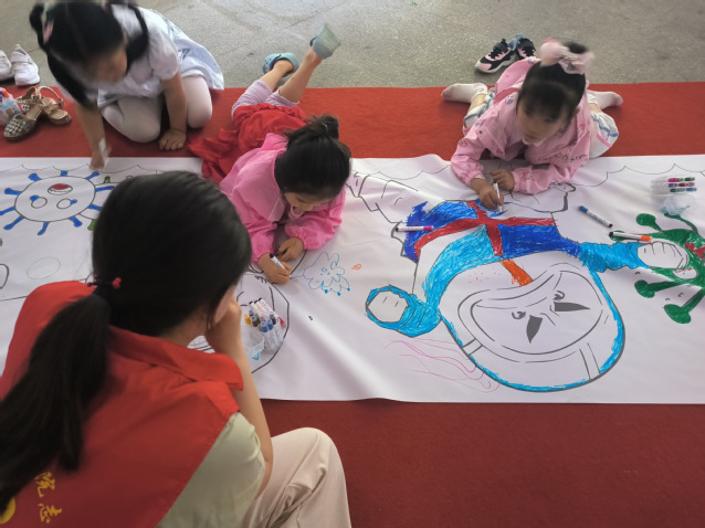 另一边,也准备了适合小朋友玩耍的地方,志愿者陪着小朋友们在绘纸上作画,现场一片欢声笑语。