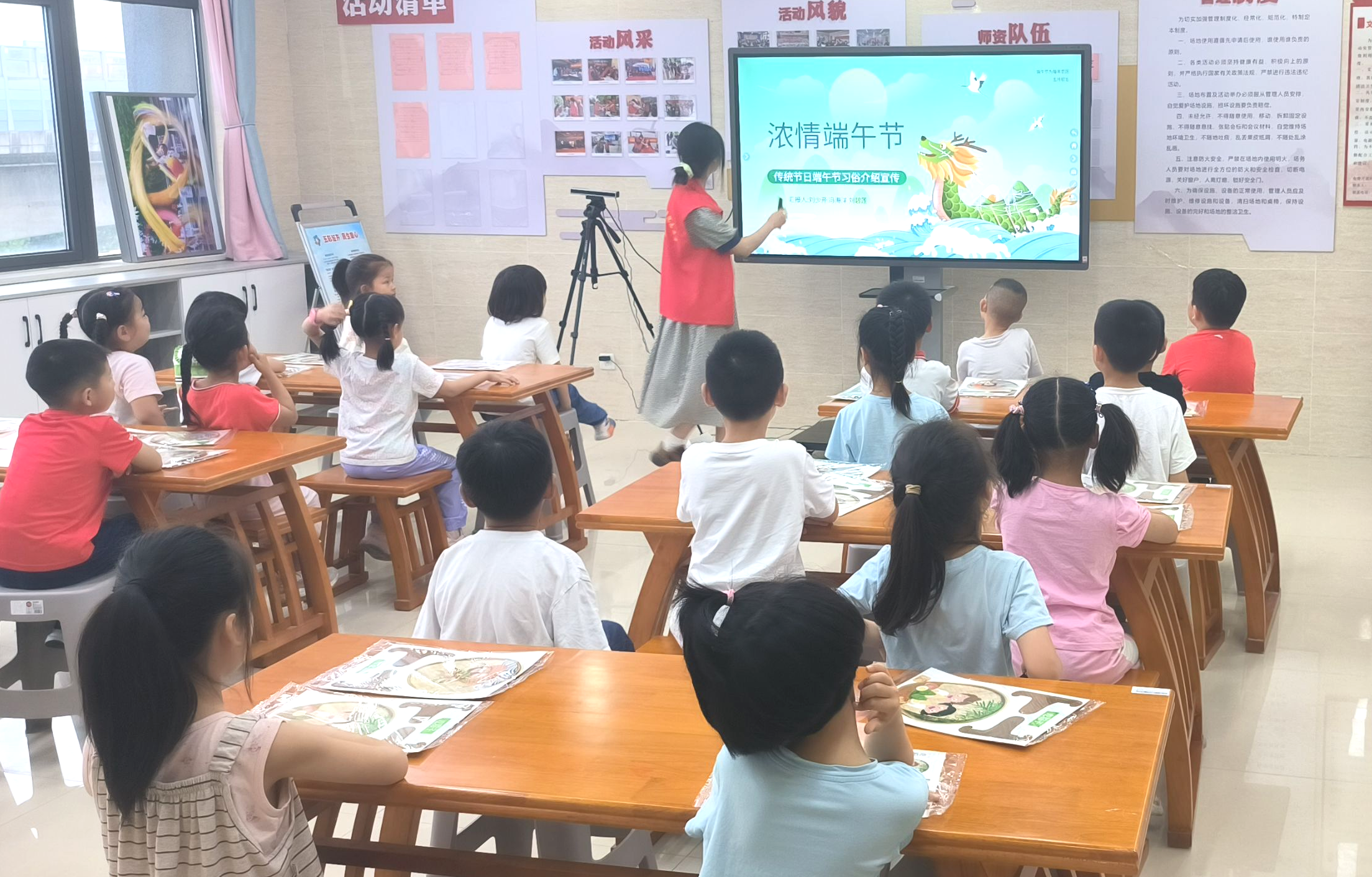 开场的端午介绍环节围绕着端午节的历史和习俗展开,志愿者们与小朋友们高频互动,鼓励小朋友们积极参与问答。趣味生动的言语赢得了小朋友们的阵阵回应,这不仅增加了节日的趣味性,也让小朋友们对端午节有了更深刻的了解。