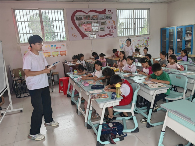 下午两点,“三叶草”志愿服务队与原队伍工作对接结束后,正式投入到了忙碌而又充实快乐的工作当中。成员两两一组,各自奔赴不同的年级开始志愿服务活动。成员们精心准备了丰富多彩的课程内容,在接下来的一段时间内,孩子们将学习到包括基础课本知识、科学知识普及、文化艺术熏陶以及体育活动等各种知识,团队力求通过多方面的教育,激发孩子们的学习兴趣,培养孩子们的综合素质。