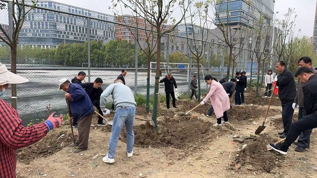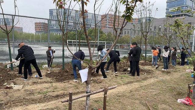 活动现场,大家有序组队、分工协作、干劲十足,挖坑、扶苗、培土……每个环节都做得认真细致、有条不紊,以饱满的热情投入到种一株绿,收获一片春的行动中。经过一个多小时的努力,一棵棵树苗在游泳馆的东南角稳稳扎下了根,为校园绿色发展再添一片新绿。