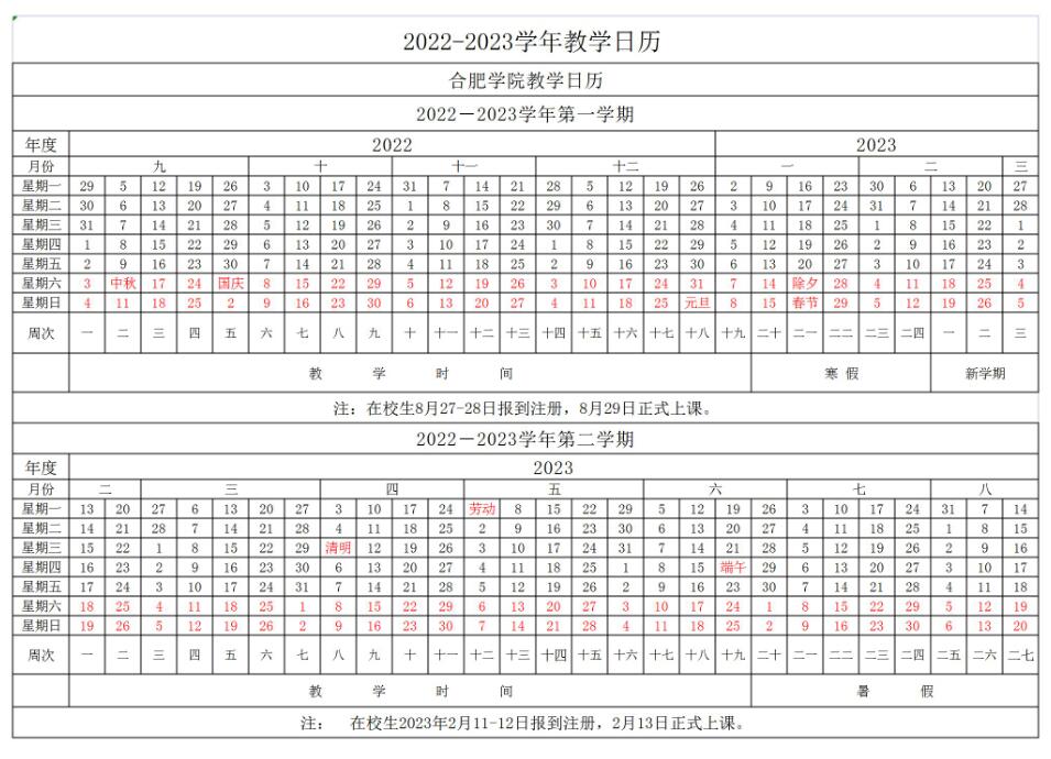 2022-2023学年教学日历