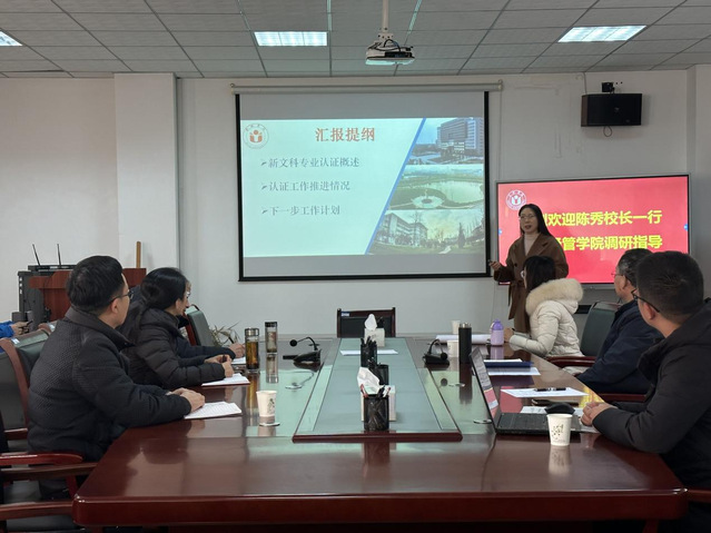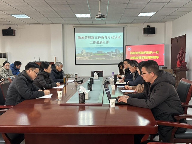 为切实加强学校新文科专业内涵建设,提升专业建设水平,推动学校教育教学高质量发展,12月20日,副校长陈秀前往经济与管理学院调研物流管理新文科教育专业认证推进工作,教学质量监控与评估处处长储忠、副处长王玉陪同,经济与管理学院党委书记倪泽强、院长陈江华、副院长于娜,物流管理专业负责人王晓艳教授和专业骨干教师参加会议,会议由陈江华主持。