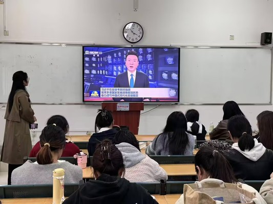 随后,同学们共同观看相关视频资料。视频中,安徽省各地在新发展理念的指引下,积极探索转型升级之路,一批批高新技术产业蓬勃发展,绿色生态屏障日益坚固,对外开放水平不断提升,人民群众获得感、幸福感显著增强。同学们被一幕幕鲜活的画面所震撼,纷纷表示要在新时代的征程中,更加坚定地践行新发展理念。