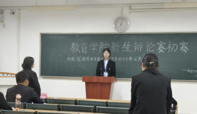10月18日晚18时30分,教育学院新生辩论赛初赛在一期3栋303教室拉开序幕。本次辩论赛围绕“强调情绪价值对亲密关系利大于弊还是弊大于利”这一主题展开。担任本场比赛的评委为教育学院杨濡婕、人工智能与大数据学院田夕语和人工智能与大数据学院曹志一。