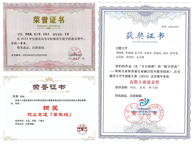 此前,在2024年安徽省高等学校师范生教学技能竞赛中,我院教师指导的6组选手斩获1个一等奖、1个二等奖、2个三等奖和2个优胜奖;1组选手在安徽省大学生创新大赛(2024)总决赛中荣获高教主赛道金奖;2组选手在第十一届“挑战杯•华安证券”安徽省大学生创业计划竞赛、第十七届安徽省大学生职业规划大赛中分别荣获铜奖。