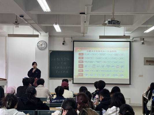 为了促进入党积极分子深学细悟,共筑党员发展坚实基石,教育学院入党积极分子专题培训课于2024年11月8日中午12:30在三栋301教室顺利展开。党委组织部组织科党校办公室科长姚娜老师为大家作了一场《中国共产党发展党员工作细则》专题讲座。