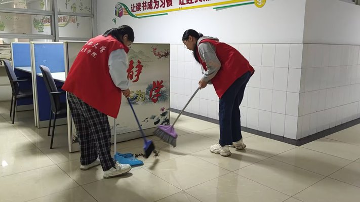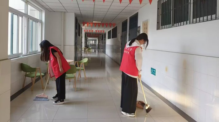 在活动开展前,教育学院志服队做了充分的准备工作,包括制定清洁计划、分配任务、准备清洁工具和材料等。在活动期间,志愿者们穿着志愿者服装,手持洁工具,专心致志地投入到打扫工作中。