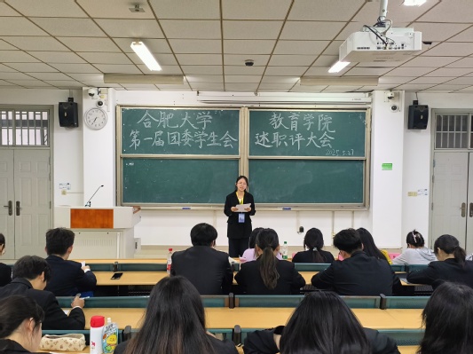 5月27日,教育学院第一届团委学生会述职评议大会及部长换届活动在一期3栋101教室举行。本次大会的评委由教育学院团委学生兼职副书记朱思宇、周琴以及主席团成员周友梦蝶、杨子涵、苏雯组成,各部门部长及其委员共同参与。 为保障会议的顺利进行,大会开始前,主持人宣读了考评规则,各部门按顺序依次完成述职报告,并按照签到顺序进行展示。“长风破浪会有时,直挂云帆济沧海”,在述职报告过程中,成员们总结了自己过去一年的工作情况,分析存在的问题,提出改进措施,并展望未来的发展。 述职结束后,评委们对各成员提出了具有针对性的问题,各位成员沉着应答,充分展现出专业素养和冷静应对的能力。