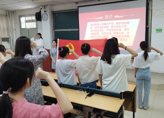为继承和发扬党的光荣传统和优良作风,进一步增强基层党组织的战斗力、凝聚力和吸引力。2021年6月11中午,在3号楼101教育学院组织召开新党员入党宣誓大会。 鲜红的党旗,简而有力地为现场渲染着庄严的气氛,全体党员同志共同演唱《国际歌》后,宣誓仪式正式开始,此次宣誓仪式由教育学院小教党支部委员王瑞主持,宣读新党员名单后,由支部汪婷同志带领36位新党员同志宣读入党誓词,在场老党员重温入党誓词,现场顿时响起阵阵激昂的宣誓声,每位同志都发自内心的抒发了对党忠诚的决心。 最后,教育学院党委副书记饶睿做总结,她对新党员同志的加入表示祝贺,希望新党员同志加入后以一名党员的标准来要求自己,在行为上入党,进而在思想上入党。在今后的学习生活中,永葆共产党员的先进性,充分发挥模范带头作用,勉励大家做新时代的合格党员。(教育学院)