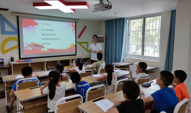 回首百年,庆华诞 ——教育学院“青春向党 育你同行”暑期三下乡社会实践活动报道(五) 100年里,在中国共产党的领导下,中华民族培养出了一代又一代的社会主义建设者和接班人,祖国大地日新月异,人民的生活也发生了翻天覆地的变化。在建党一百周年之际,青春向党,‘育’你同行”社会实践团队7月22日的行程紧紧围绕着纪念党的光辉伟业,庆祝党的百年华诞进行。 今日志愿者继续诗歌《我的中国心》的教学。通过上节课学习,同学们已经能够熟练地朗读作品。在老师的讲解下,同学们对这首诗的理解逐渐加深,朗读时的情感表达也更加饱满。朗朗上口的诗词读出了孩子们对祖国的深情赞美和无限向往,令志愿者们心潮澎湃、热血沸腾。