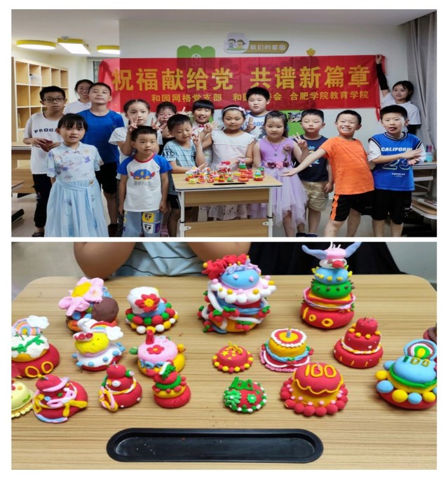 (图为志愿者与孩子们用超轻黏土给党制作的100年生日蛋糕) “人民有信仰,国家有力量,民族有希望。”儿童是祖国的花朵,孩子们越早接触党史学习,便能够越早地树立起“跟党走”的坚定信仰,也更能够成为祖国所需要的担当民族复兴大任的时代新人。青春路上,教育学院的志愿者们从未停歇…… (教育学院童腾平 王璇)