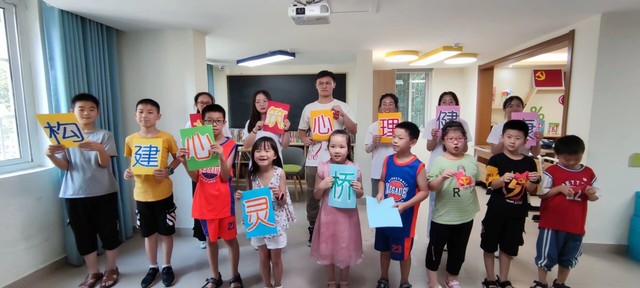 用爱呵护心的健康 ——教育学院“青春向党 育你同行”暑期三下乡社会实践活动报道(六) 2021年7月23日,合肥学院教育学院“青春向党,‘育’你同行”团队在滨湖和园读书郎俱乐部开展了心理团体辅导活动。 本次心理团体辅导活动面向从家庭人际关系到学校人际关系转变的小学生,他们的自控能力不足,自尊心和自主欲强烈,心理稳定性较差,容易受挫。为了帮助滨湖和园社区的小朋友们更好地适应小学的学习生活与人际交往,青育队志愿者与孩子们一起进行了心灵的探索与游戏。