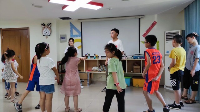 (图为孩子们正在玩心理团辅游戏) 除了专门开展的团辅活动之外,平时生活中的点滴言行都能体现志愿者对这群孩子的关心与爱护。社区内有一部分小朋友的家长工作繁忙,常常很早就把他们送来、很晚才接他们回家。志愿者会主动和他们谈话交流,积极开导心情低落的学生,用心呵护他们的健康。 苏霍姆林斯基曾经说过:“一个好的教师,是一个懂得心理学和教育学的人。”青育队成员们充分发挥自身的专业优势,为社区小朋友们传授知识的同时,也给他们的心灵带来了束束阳光。让我们一起用爱呵护心的健康。 交流是一种了解他人内心世界的方式,而心理团辅活动则是一场更为生动有趣的心灵沟通。青育队的成员们希望通过这个活动走进社区孩子们的内心,帮助他们打开自己心灵的窗户;他们希望通过这个活动向社区、向家长们宣传关注学生心灵成长的重要性;他们更希望通过这样的护苗行动打造身心全面发展的祖国未来的顶梁柱们。志愿者们纷纷表示,本次活动虽已结束,但他们的行动永远不会止步。