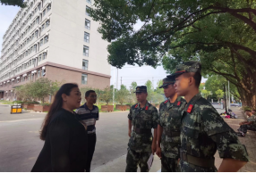 9月27日上午,教育学院院长江芳教授,党委书记刘良宏,副院长卫萍教授在21级新生辅导员张弦乐学生会干部的陪同下慰问承担军训任务的教官和21级参训的新生,并为大家准备了慰问礼物。
