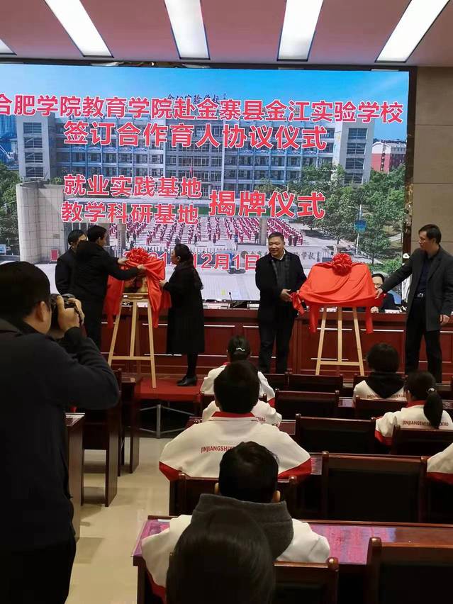 12月1日,合肥学院教育学院与金寨县金江实验学校签订合作育人协议暨“就业实践基地”、“教学科研基地”揭牌仪式在金江实验学校报告厅隆重举行。 中共金寨县委教育工委专职副书记储勇同志,金寨县金江实验学校党支部书记、校长桂亮同志,学校党支部副书记、副校长胡晓昂,合肥学院教育学院院长江芳,党委副书记王迅,两办主任杜启明,学工办主任符琳,党委组织员王多慈出席签约仪式。活动由胡晓昂主持。 金江实验学校是金寨县政府新创办的一所九年一贯制非寄宿公办学校,学校秉持“以人为本,促进师生共同成长”的办学理念,倡导“敬业爱生、乐于奉献、敢于创新”的办学精神,实施“科学化、人文化、精细化”管理。储勇在致辞中对教育学院一行的到来表示欢迎,表示将全力支持双方合作。他希望双方能不断落实合作机制,拓宽合作路子,扩大合作影响。 教育学院指出,协议的签订顺应了新时代卓越人才培养的要求,提升了校地间合作的层次。希望双方以合作育人协议的签订为契机,进一步加强沟通与合作,对接双方需求,携手共建,共谋发展。 此后,教育学院一行先后深入霍山县、安庆市大观区、桐城市分别走访学院优秀校友刘江、胡天保、陈梦凡。每到一处,教育学院一行都与毕业生工作单位的领导倾心交流,了解毕业生工作情况和单位的评价,听取毕业生在工作中的感受、收获。在桐城期间,还与校友、桐城市委副书记金秋明进行了交流。(教育学院)