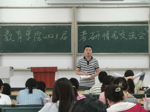 有针对性地为我院考研学生提供服务和帮助,增加学生考研信心5月17号14时,3栋101召开了教育学院2023届考研情况交流会。交流会学工办主任符琳主持,共有68名2023届考研学生参会