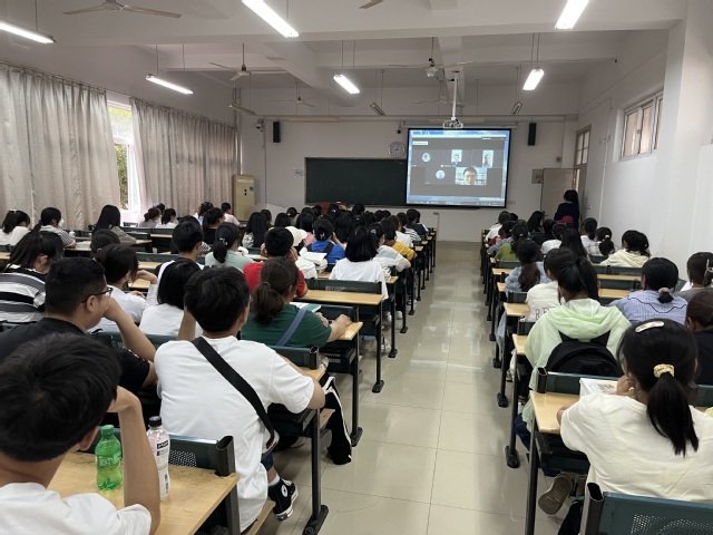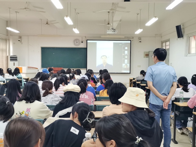 报告会上,刘鹏以《大学第一课,做好职业规划》为题,与学弟学妹们分享了自己的大学生活、工作体验。刘鹏指出,首先需要重视成绩。第二,英语一定要学好,要坚持背单词。其次,他鼓励新生要多去参加活动竞赛,去锻炼自己,站在讲台上去表达自己。第四,告诉新生要主动学习,要有目标。推荐新生去关注一下国企或央企等,了解关于考公司的事宜。会议的最后,刘鹏希望大家要保持这种好奇心,也希望大家保持这种好奇心,成长为自己想象的样子,走得更高更远。
