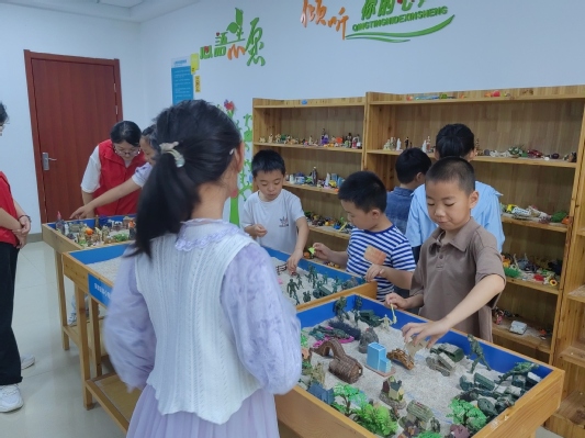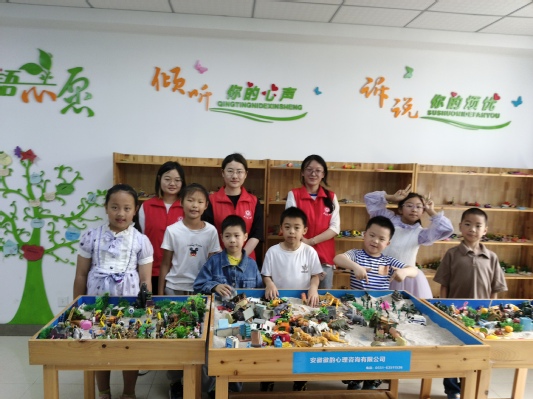 5月27日上午,教育学院阳光心志队赴欣园社区为社区儿童开展心理沙盘辅导活动。本次活动旨在深入推进社区儿童心理健康教育工作,有效帮助儿童疏导情绪,提高认知能力,充分发挥儿童的想象力、逻辑思考能力、言语表达能力,并让广大儿童形成乐观积极的心态,提高他们的团队合作意识。