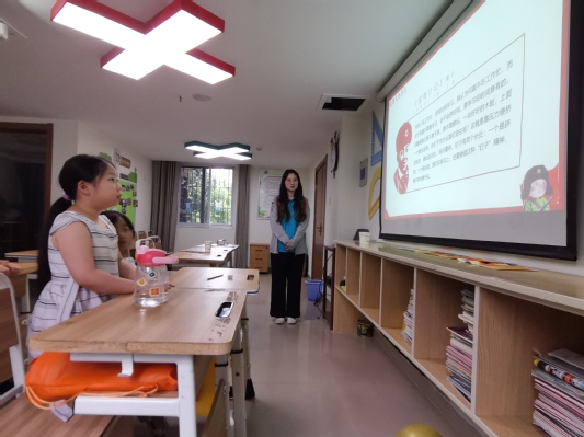 7月4日,合肥学院教育学院“七彩童年,‘育’你相伴”三下乡团队来到滨湖和园社区开展社会实践活动,志愿者朱思宇和周琴为孩子们带来了“弘扬雷锋精神,传颂英雄故事”主题课程。 雷锋精神,人人可学;奉献爱心,处处可为。六十年来,雷锋精神哺育和激励了一代又一代人成长,为让雷锋精神在中华大地不断闪耀光芒,继承革命先辈的优良传统,培养学生爱党、爱国、爱社会主义的朴素情感,我们设计了本次课程内容。在课程开始时,朱老师呈现了雷锋的卡通形象,让同学们猜测本节课学习的榜样人物是谁,同学们对于雷锋的形象并不陌生,都踊跃回答,“雷锋!”