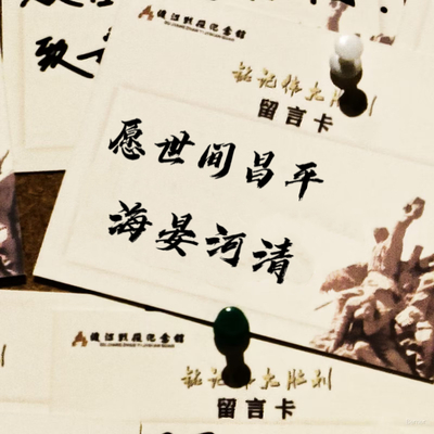志愿者们在渡江战役纪念馆中收集了许多合肥市红色革命文化资料,为调研分析做相关准备。他们参观了馆内展示的重点历史事迹与历史人物,全方位了解渡江战役纪念馆中红色文化的继承与传播情况,同时对馆内红色文化的展示方式与途径进行记录。除了传统的雕塑模型、文字、图片描述、历史文物陈列之外,纪念馆还运用了科技化的投影放映与动态沙盆等。结束馆内调研活动,团队成员在展馆内的烈士陵墓前默哀,在凝重的历史氛围中庄严宣誓、缅怀革命先烈,深受触动写下了愿世间昌平,海晏河清的美好祝愿。