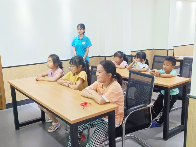 前行是在每一次的努力下进步。孩子们短暂地感受了小游戏正话反说的挑战后,又迎来了一首欢乐的歌曲《天天向上》,“我们天天向上散发着光,天天向上乘风破浪,一起温暖欢笑飞扬。”伴随着音乐的律动,孩子们认真学习志愿者的动作,舞动自己的小小双手,努力做好每一个动作,尽管在休息时间也未曾停下练习。对比初次尝试时动作不连贯或卡不上点的情况,在随后的风采展示中,孩子们动作流畅,在音乐中绽放着自己自信的笑容。手势舞能通过肢体动作和舞蹈节奏传递思想和情感,给孩子们艺术和美的熏陶。孩子们用流畅自然的动作、整齐划一的手势,协调优美的身体语言,诠释着音乐的美感,自信的面庞展示着青春的朝气,洋溢着青春的色彩,大家尽情体验手势舞带来的快乐,展现了积极向上、朝气蓬勃的良好风貌。