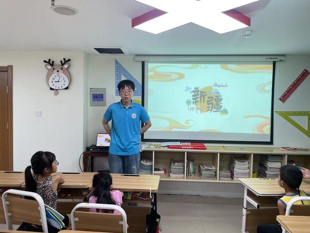 “太阳下山明早依然爬上来,花儿谢了明天还是一样的开……”音乐一响,孩子们就跟着志愿者一同打着节拍,轻轻哼唱。为了让孩子们更好的学习这首歌曲,志愿者给他们讲解了歌曲的创作背景以及歌曲含义。“这首歌是1939年,王洛宾在搜集新疆民歌时发现的,而后他将其翻译成汉语。歌曲传唱至今,经久不衰,深受人们喜爱。歌曲采用新疆传统的小调的形式,曲调轻快。歌词中的“别得那”在维语中是“小鸟”的意思。”在志愿者声情并茂地讲解中,一个热情活泼的民族呈现在孩子们面前,眼前仿佛出现一位美丽的维吾尔族姑娘伴随着轻快的节奏,跳起动人的萨玛舞。课程结束,志愿者表示,希望通过这首歌在带孩子们欣赏民族文化的同时,告诉他们年华易逝,应当珍惜时间。