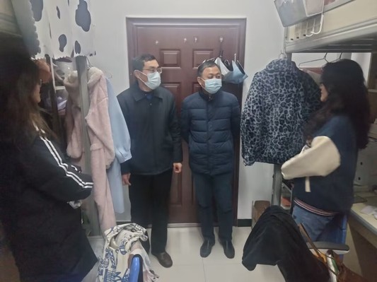 为进一步了解学生返校后的状态,激励同学们以更积极的精神面貌投入到校园学习和生活中,2月12日-13日,我院党委书记刘良宏、党委副书记王迅,副院长谢兆树并辅导员老师深入学生宿舍亲切看望学生。 见到阔别两个月的老师,每个同学的脸上都难掩激动的神色。刘良宏详细询问同学们的学习及生活状况,鼓励各位学子学业生活两手抓,用功学习,学好专业知识,提升个人价值,用心生活,宿舍定期通风,注意个人卫生,打造舒适整洁宜居的生活环境。王迅细心叮嘱同学们近日气温骤降,及时增添衣物,预防感冒。安全无小事,生命重如山,宿舍安全是重中之重。谢兆树提醒同学们要注意近期考试安排,合理规划好时间,认真复习,考出好成绩。 通过走访宿舍听取学生心声,学院领导和老师们进一步了解了返校学生的情况以及实际需求,为接下来的学院教学的稳步推进打下了良好基础。通过此次寝室走访,也让同学们认识到了当前国家的疫情防控新政策,深切感受到家的温暖和学院的关怀,同学们纷纷表示,学院领导和老师们深入宿舍让他们深受鼓舞,今后会以阳光积极的心态、健康的体魄迎接返校后的学习生活。(撰稿人:符琳 审核人:王迅)