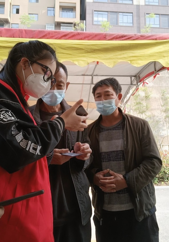 徐可馨作为一名大四毕业生,恰逢毕业却因疫情封校留在家里,她自愿走出家门参与当地的抗疫情工作,主动投入到社区防疫工作之中。大家不要扎堆聚集!”“请戴好口罩!”“请出示核酸检测二维码”“请间隔1米距离”“爷爷(奶奶)有什么我可以帮你的吗?”这是徐可馨在疫情防控志愿服务活动中说得最多的话。另外,在防疫中感受到帮助别人的快乐、被人需要的幸福与实现自我价值的欢愉,对自己的未来也有了更深层次的思想和规划。古碑镇中心卫生院院长李钰是这样评价她的:“很高兴有这样高素质的大学生愿意加入我们,热情又能干,工作认真一丝不苟,头脑也灵活,她在我们这干的很好,为我们减轻了负担高了工作效率,我们医生护士都非常喜欢她。