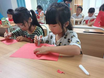 “一剪之巧夺神功,美在民间永不朽。”剪纸艺术历史悠久,是我国优秀的文化瑰宝。在各种非遗文化中,志愿者专门选择了“剪纸”作为本节课的主题。课堂上,志愿者带来的剪纸作品让孩子们发出阵阵呼声,在志愿者强调了需要注意的安全注意事项后,孩子们都迫不及待地想开启自己的剪纸之旅。孩子们拿起剪纸工具,从简单的折叠开始,一步步地将红色卡纸折叠、描画、裁剪,在“咔咔”声中体验剪纸艺术的独特魅力与神秘奇巧。