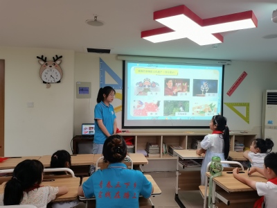 课程开始,志愿者柏洁向孩子们介绍了非物质文化遗产的相关知识,将各式各样的非遗图片展现在屏幕上,如风筝、面塑、端午节等。志愿者号召孩子们保护好、传承好这些非物质文化遗产,让非遗不“遗”,永续传承。
